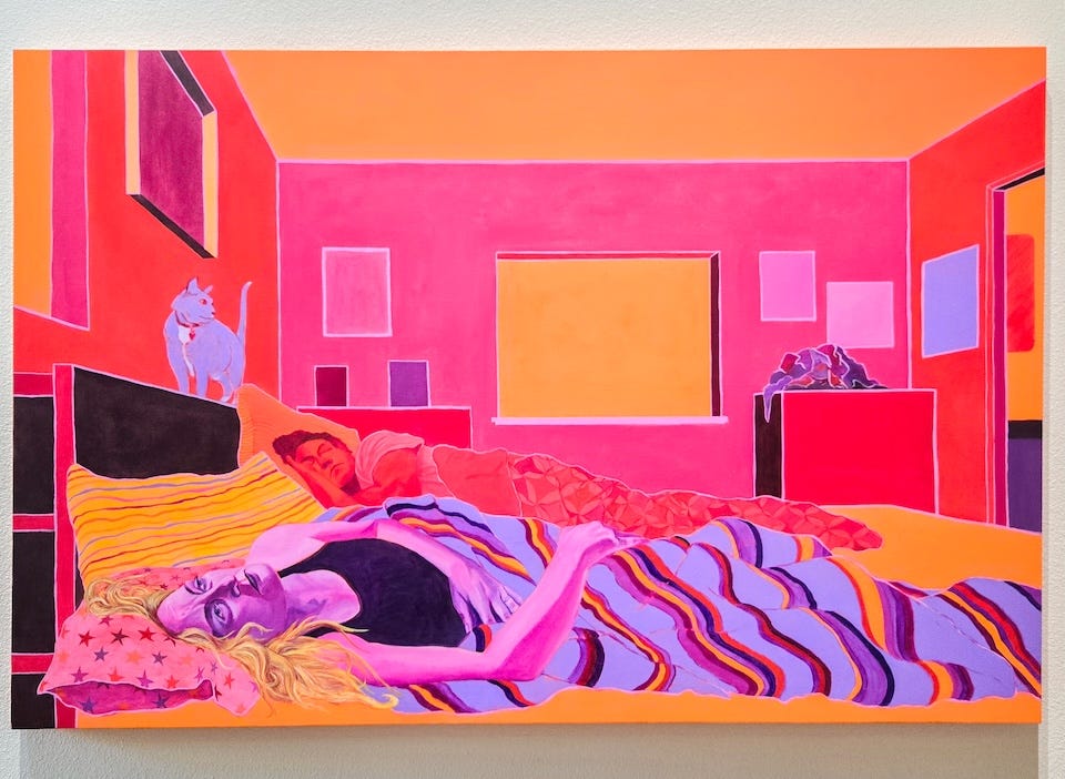 The Puffy Book starts the show off on a bright and peppy note before we move into the manifestation of despair that many of us feel when the lights go out. That manifestation is four paintings expressing the dread and insomnia that come with, as Gioia coins it, today’s “weariness and concerns.”