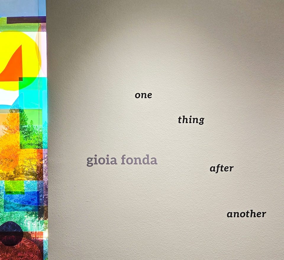 There was one piece in particular that I longed to see, the “green one”. Instead of beelining for it, though, I moved through the gallery as the artist intended. First, I enjoyed the projector presentation: 50+ Macro Micro Projection Paintings (mixed media on acetate and slide mounts, Gioia Fonda, 2025).